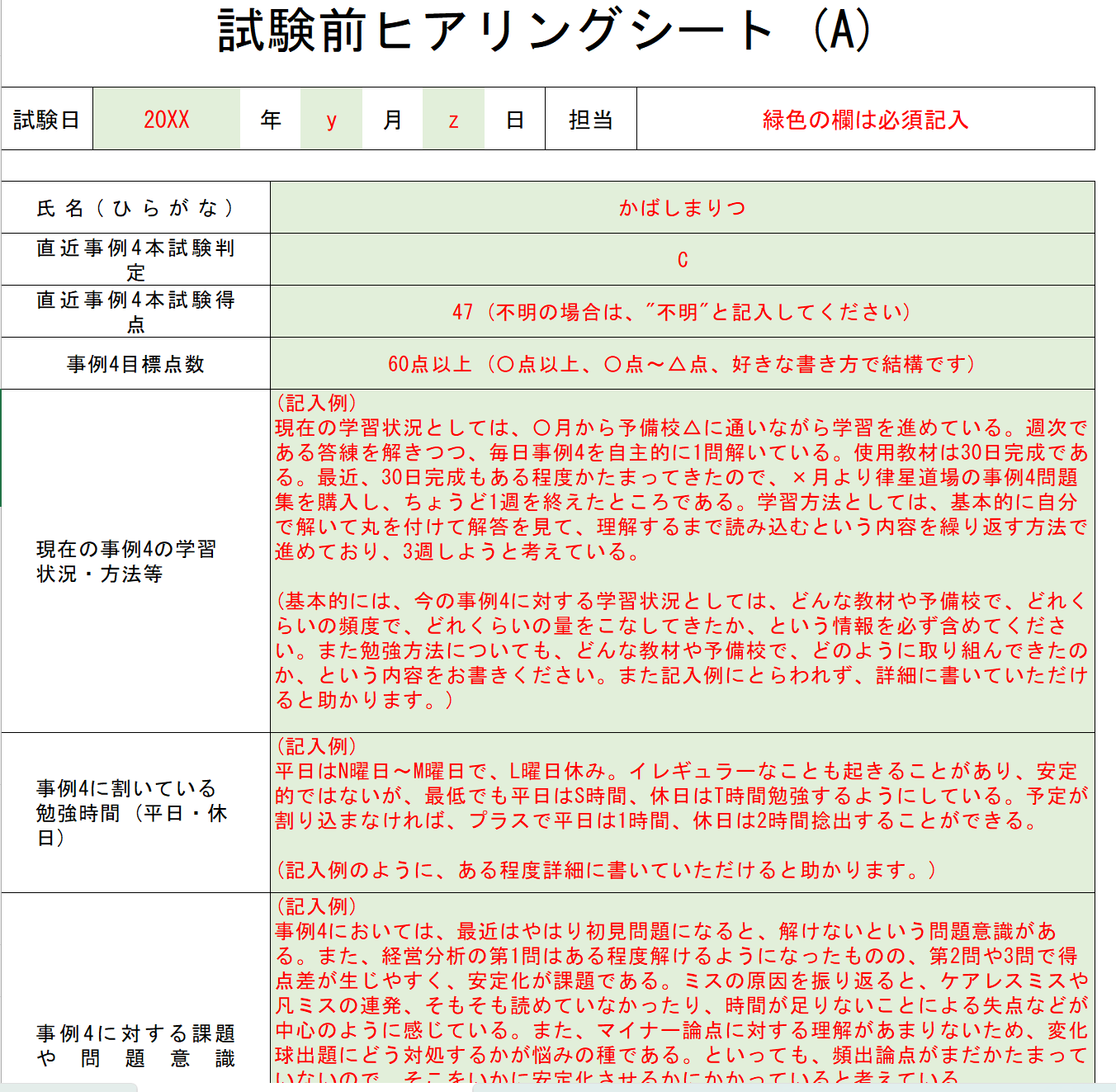 【1】事例4実践模試+ヒアリングシート&試験後思考フロー再現レポート